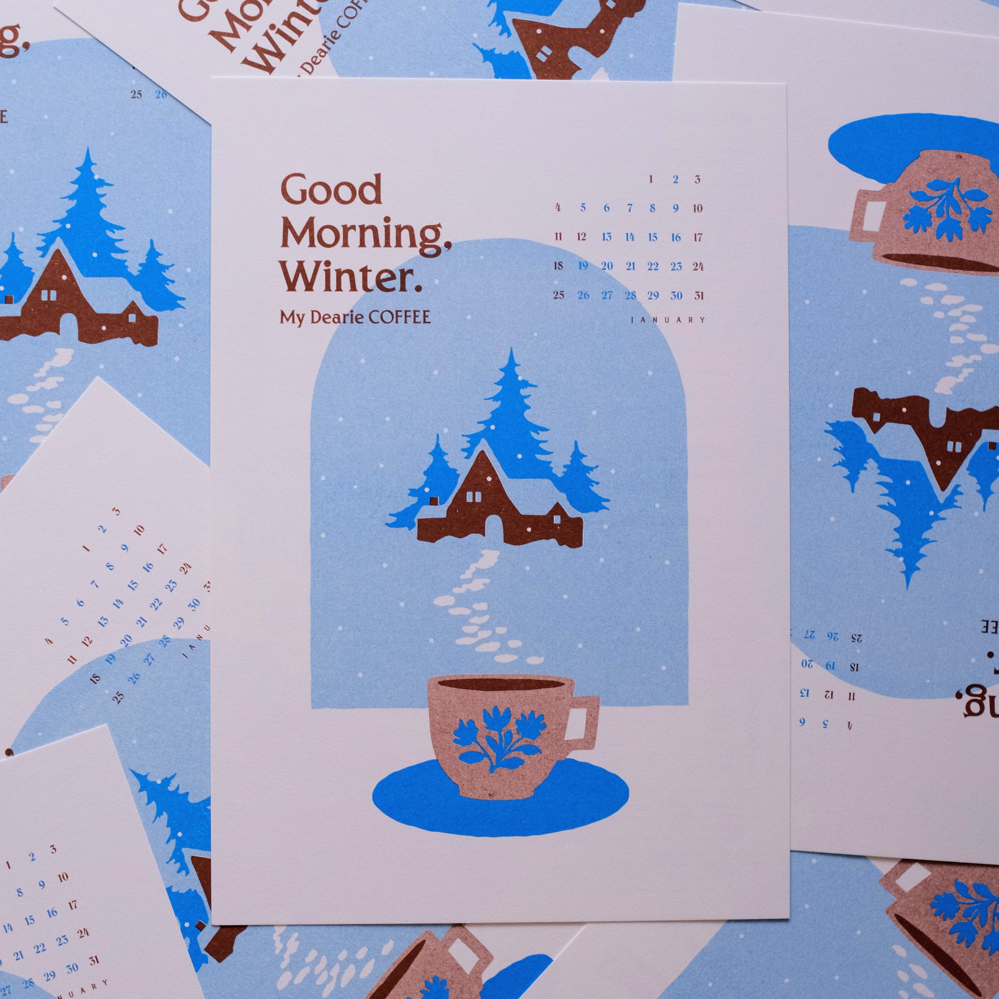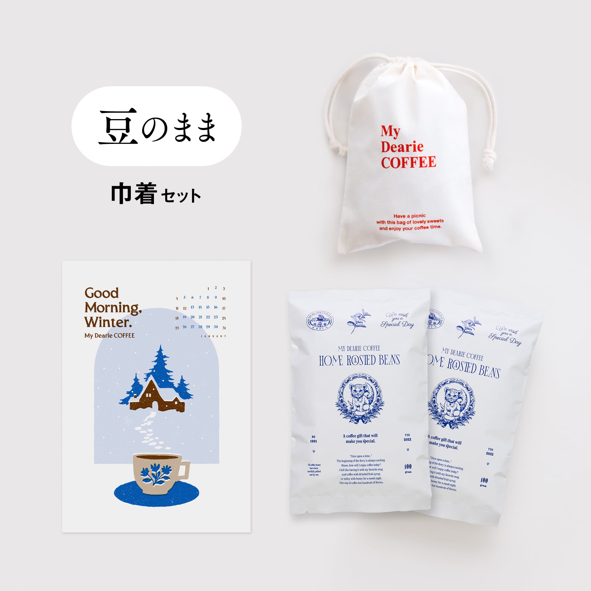 月替わりのカレンダーとマガジンに加え、巾着袋とポストカードが付いたセットです。