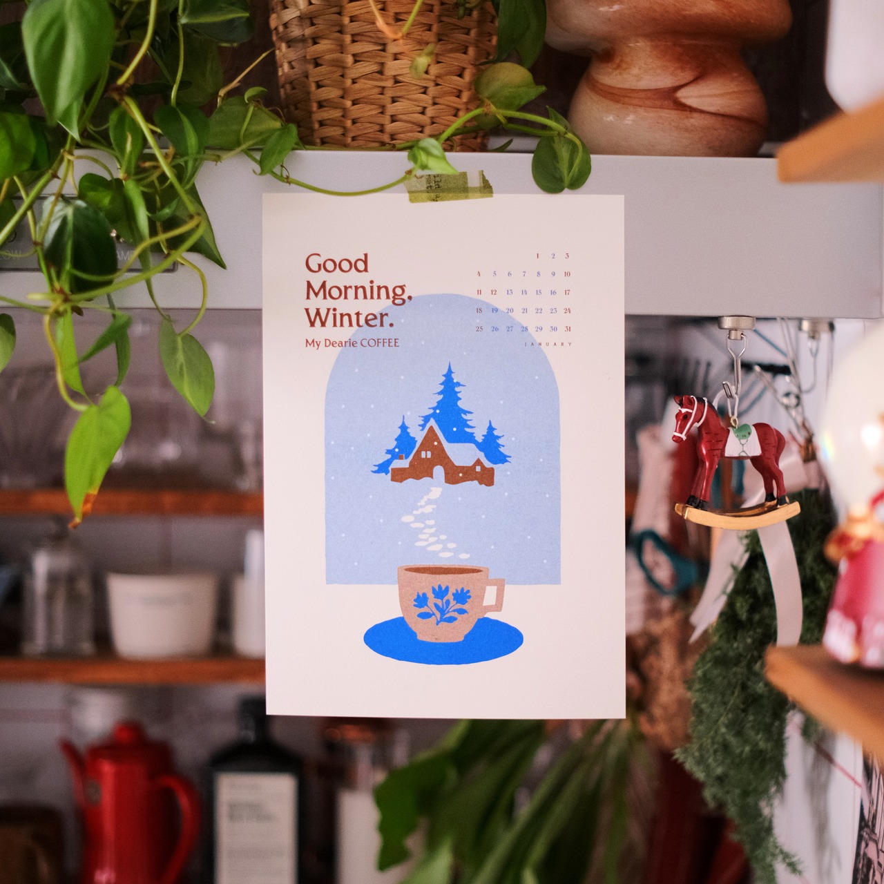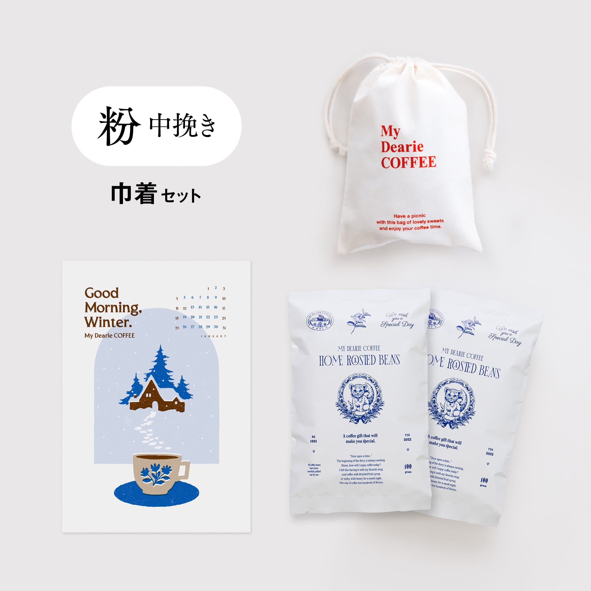 月替わりのカレンダーとマガジンに加え、巾着袋とポストカードが付いたセットです。